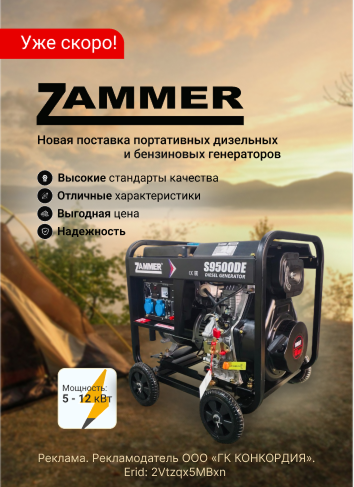 В ближайшее время на наших складах появится новая партия портативных генераторов Zammer — надежных автономных источников энергии для дома, дачи, строительных объектов и отдыха на природе.